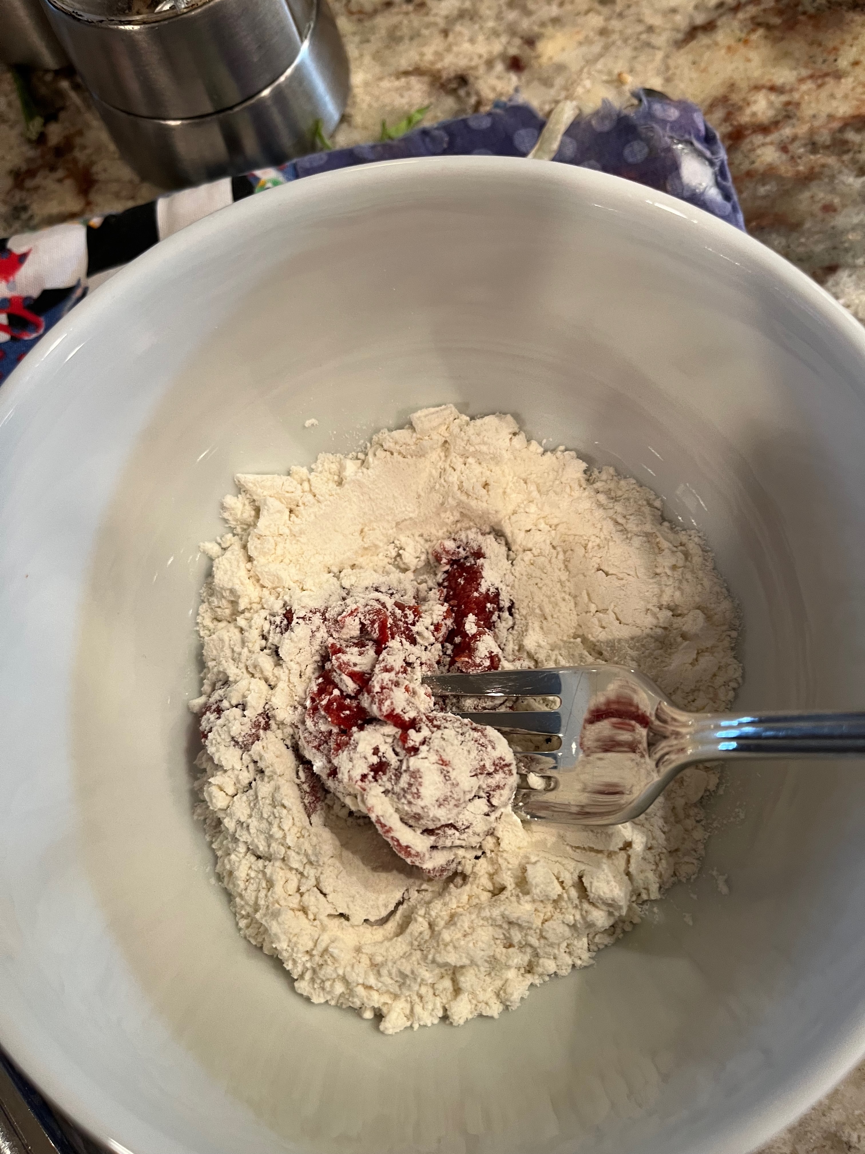 In the meantime, mix together the flour and tomato paste in a bowl and set aside.